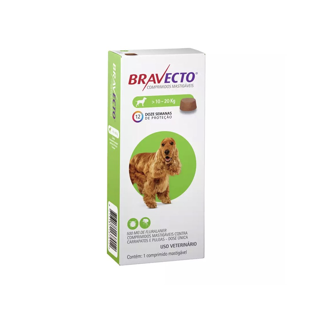ANTIPULGAS E CARRAPATOS PARA CÃES MSD BRAVECTO 500MG - 10 A 20KG