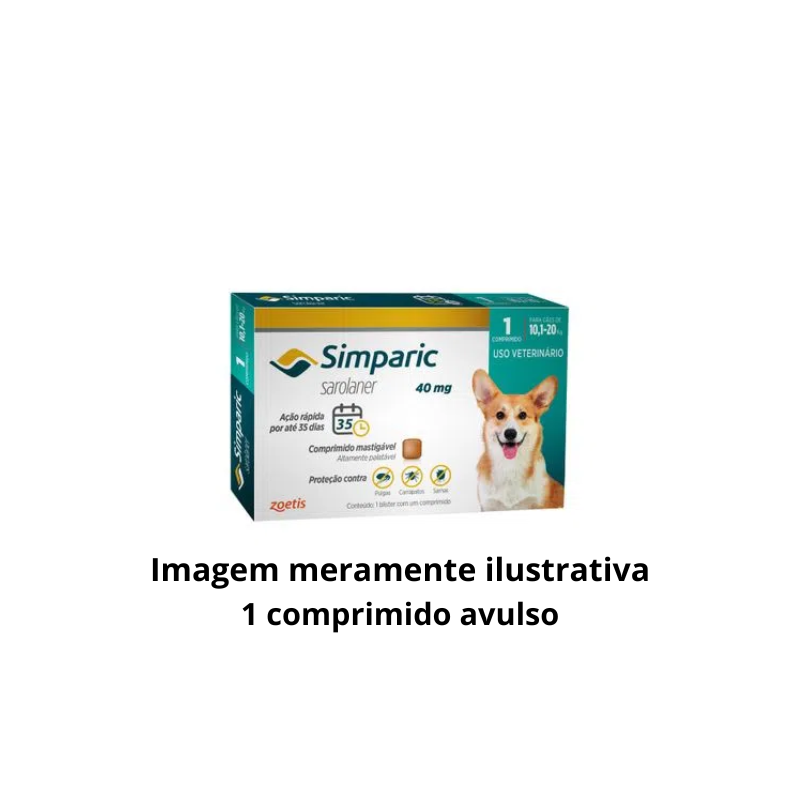 ANTIPULGAS E CARRAPATOS ZOETIS SIMPARIC 40MG 1 COMPRIMIDO AVULSO