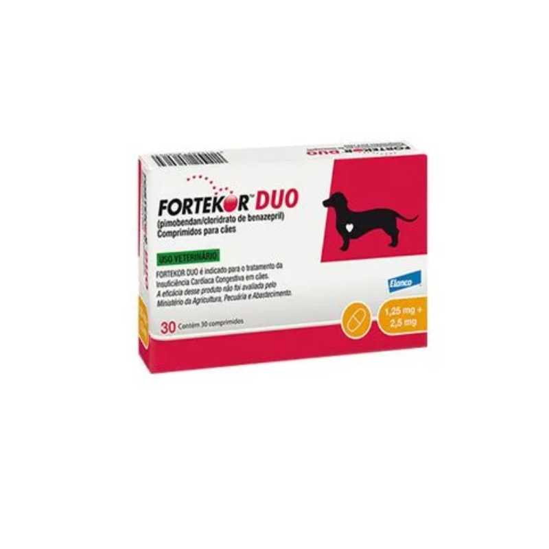 Informações Indicado para cães; Com 30 comprimidos palatáveis; Com Pimobendan e Cloridrato de benazepril; Para tratamento da insuficiência cardíaca congestiva.