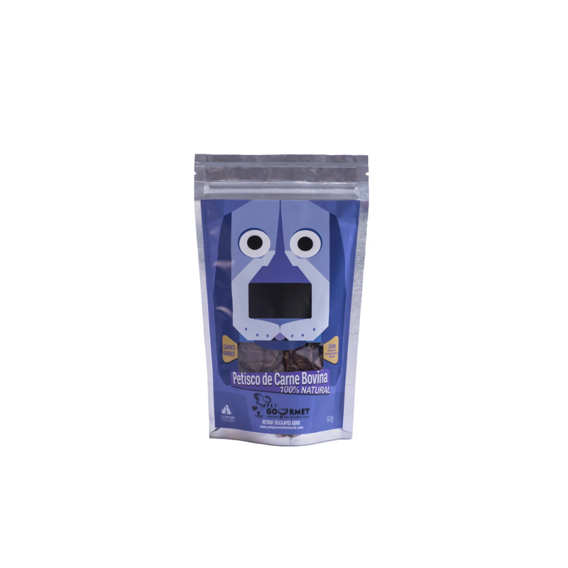PETISCO DE CARNE BOVINA 100% NATURAL Sabe quando você convida alguém especial para comer em um restaurante gourmet onde tem um petisco adorado e premiado? Pet Gourmet Natural proporciona isto, pois nossos amigos merecem sempre o melhor. Nossos petiscos são produzidos com carnes nobres, sem conservantes, corantes artificiais ou subprodutos, livre de grãos, glúten e enchimentos. Por isso, é perfeito para animais com sensibilidades alimentares. Selecionamos carnes de altíssima qualidade, que são suave e lentamente desidratadas para preservar todo o sabor e nutrientes essenciais. Embalagem que abre e fecha fácil, mantendo a qualidade. A Pet Gourmet Natural, sabe que o petisco é uma maneira de retribuir todo o carinho e a companhia de nossos amigos de quatro patas. Eles Merecem Pet Gourmet Natural! Amor e sabor em cada mordida!