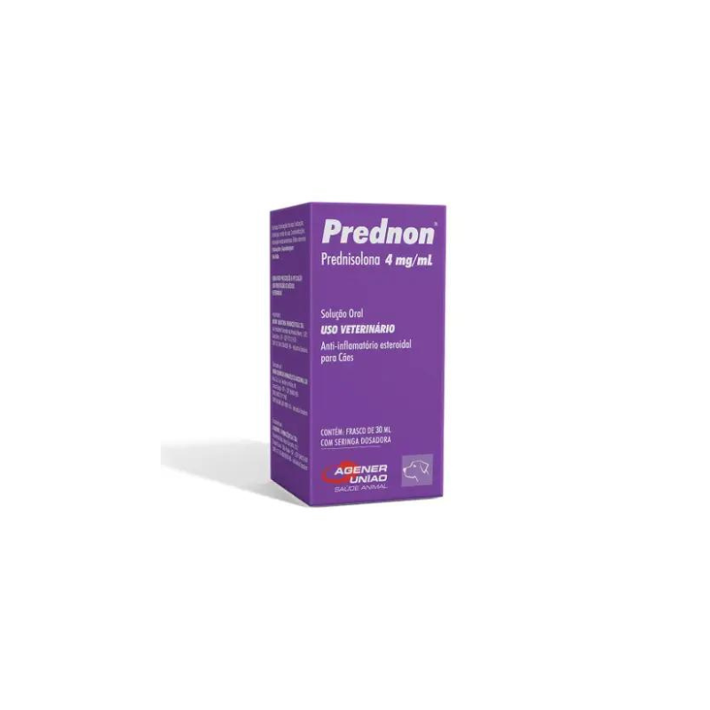 O Prednon 4mg é um anti-inflamatório esteroidal indicado para cães de todas as raças e portes desenvolvido pelo laboratório Agener União Saúde Animal. A solução medicamentosa atua no tratamento das mais variadas infecções no organismo do animal, seu uso deve ser feito via oral, diretamente na boca do cachorro. O Predon 4mg é um remédio para cachorro recomendado para o tratamento de dermatopatias alérgicas e artropatias assépticas. Além disso, ele auxilia no combate a inflamações, artrites e manifestações alérgicas.