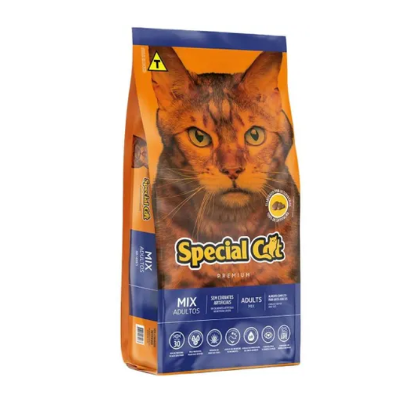<p>A Ração Special Cat Mix Premium para Gatos Adultos é uma mistura de sabor, a qual o seu pet nunca viu igual. Contém ômegas 3 e 6 que promove uma pelagem saudável e a taurina que melhora a visão e permite uma saúde cardíaca excelente.</p>